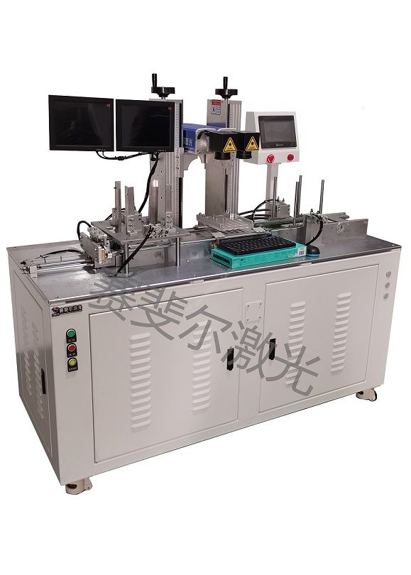 本自動線適合于對2016、2025、2032號扣式電池的激光打標 本系統設計為全自動工作方式,雙激光頭配置,由自動上下料工位、傳輸線、激光打標工位、自動上下料工位組成。 工人僅需要將碼好的料盤放入料倉,機器自動打碼完成后,在出料倉碼好收取即可。 激光打標采用目前國際領先技術的光纖激光打標機,免維護,無耗材,正常使用壽命10萬小時以上。 產能預估:日班產按十小時計,產能達到6—10萬只。